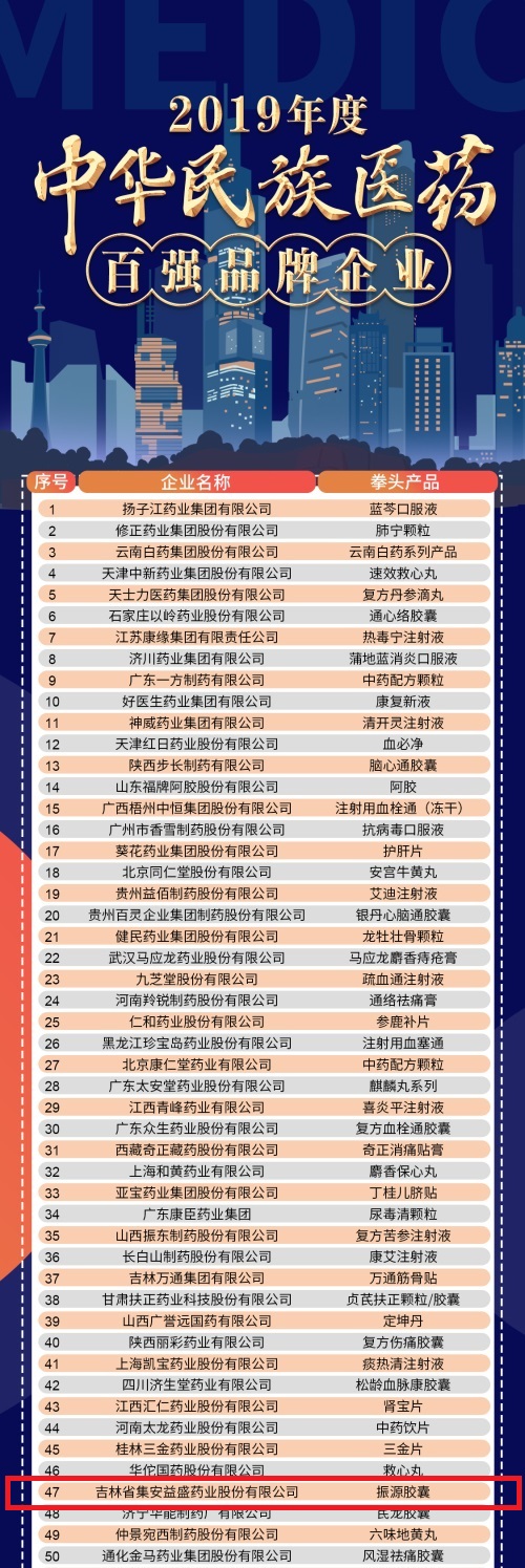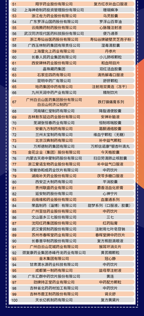 中华民族医药百强品牌企业榜单详情: